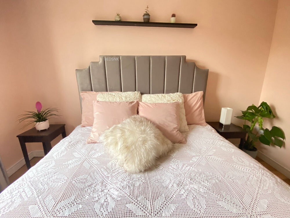 Introducing the Eva Bed Frame, a luxurious and modern addition to any bedroom. With its unique and stylish headboard and footboard, this bed will bring a creative touch to any master, guest, or child bedroom. Feel confident in this exclusive and fun piece, promising comfort and versatility.