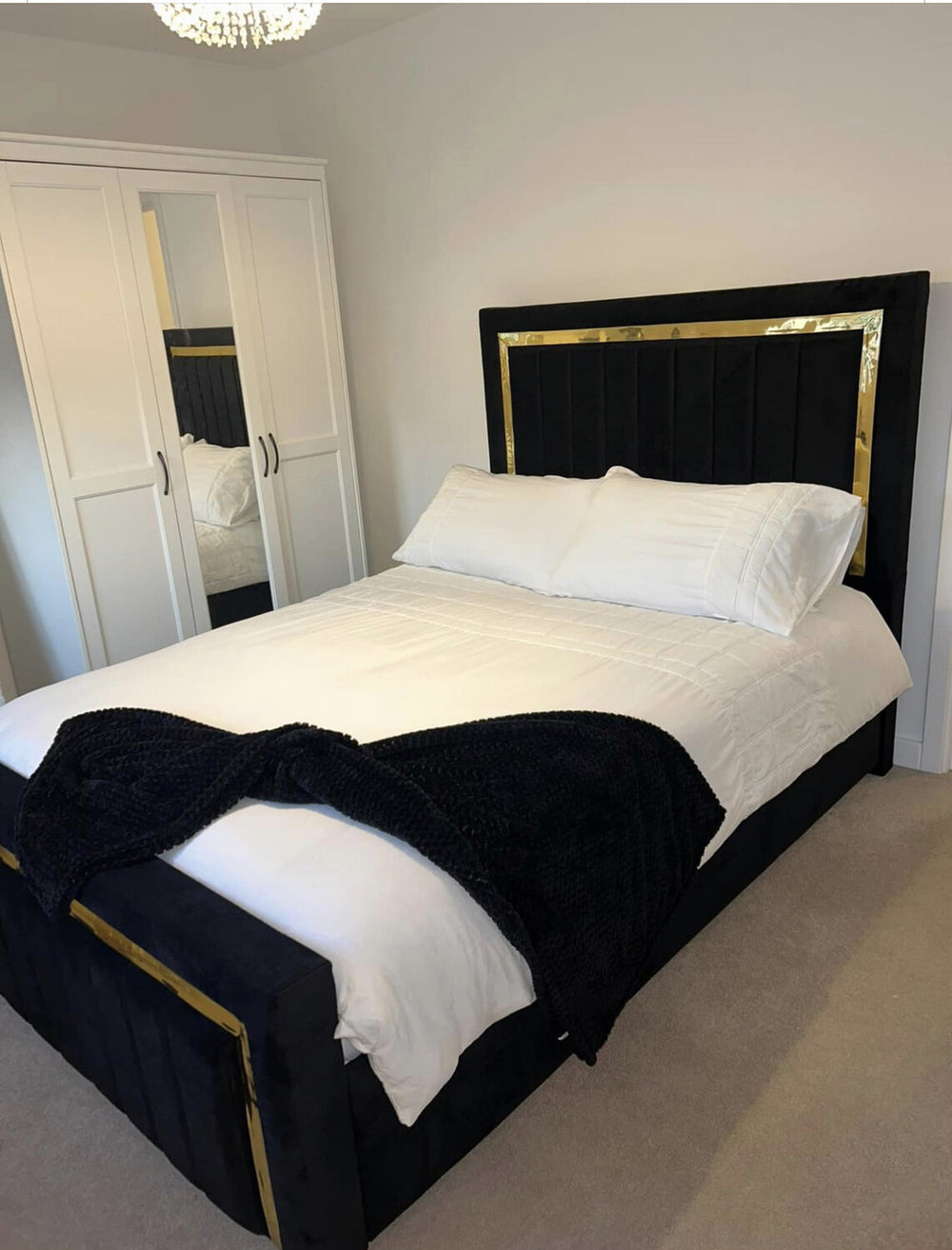 The Isabel Bed Frame is the perfect addition to any bedroom. Its thick gold sticker finish provides a luxurious and timeless look, while its matching footboard adds an extra touch of sophistication to the design. Enhance your space with this stylish and elegant bed frame.