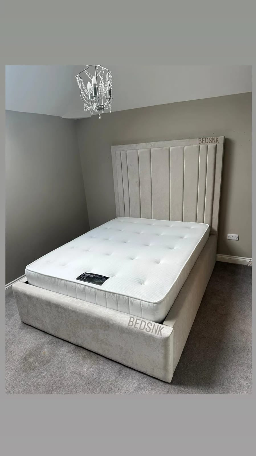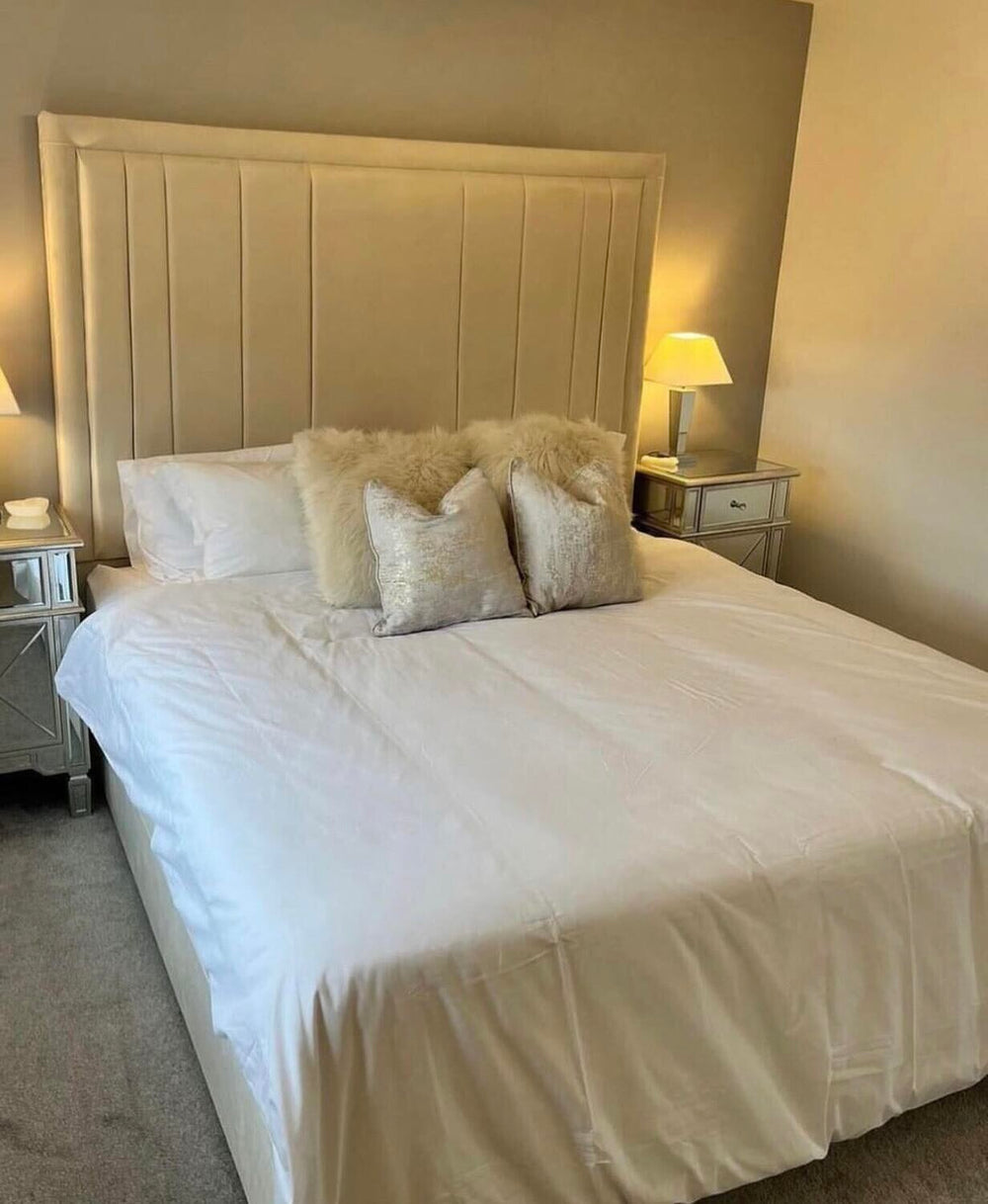 New the Lara bed is an exceptional sophisticated addition to any bedroom that will transform the atmosphere of the room and provide a touch of added luxury. Featuring a straight cut panel upholstered, floor standing headboard with the plain footboard.
