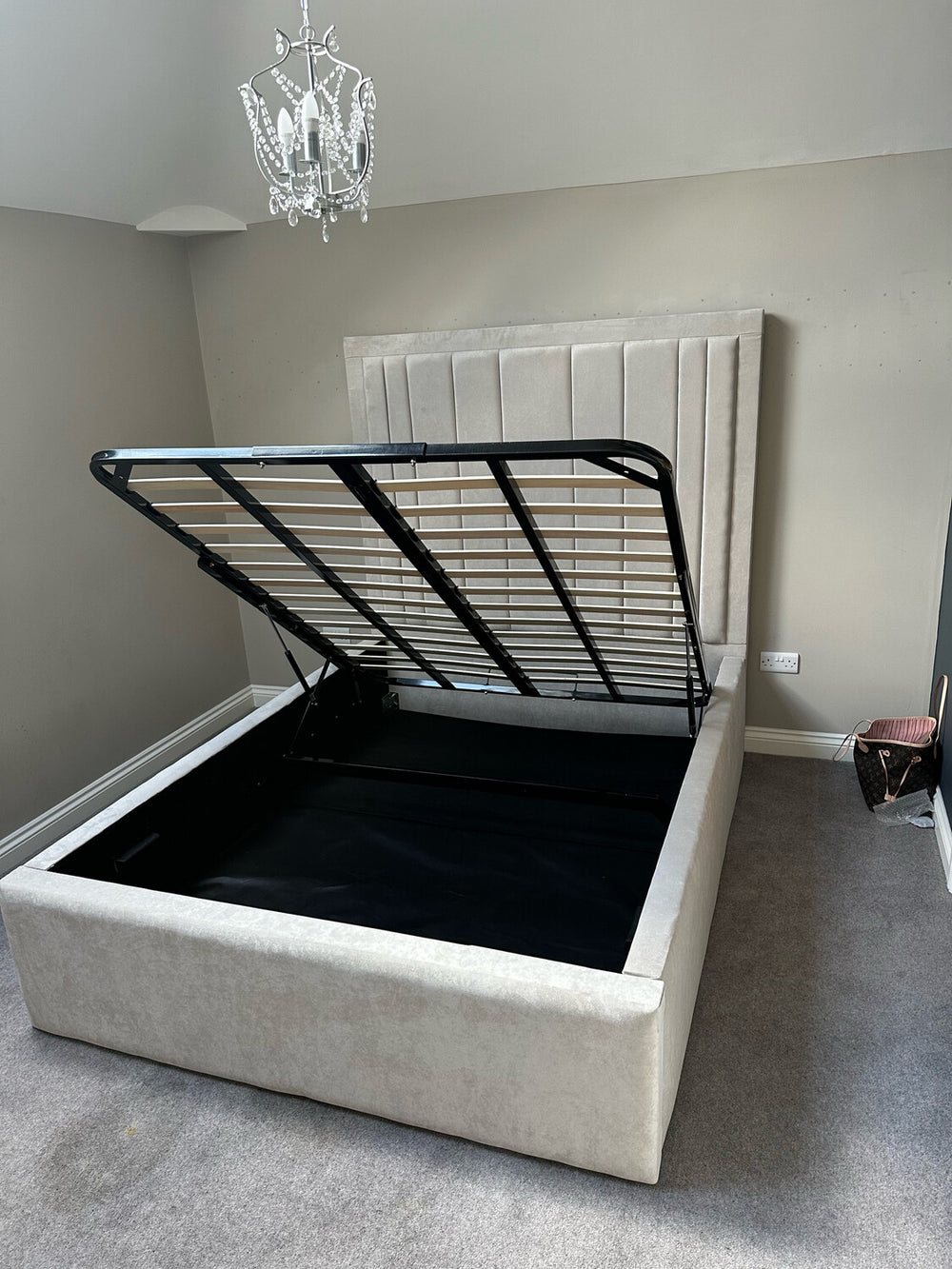 The divan ottoman storage option is gas lift up storage under the bed. Thewooden storage base is split which comes in two compartments.