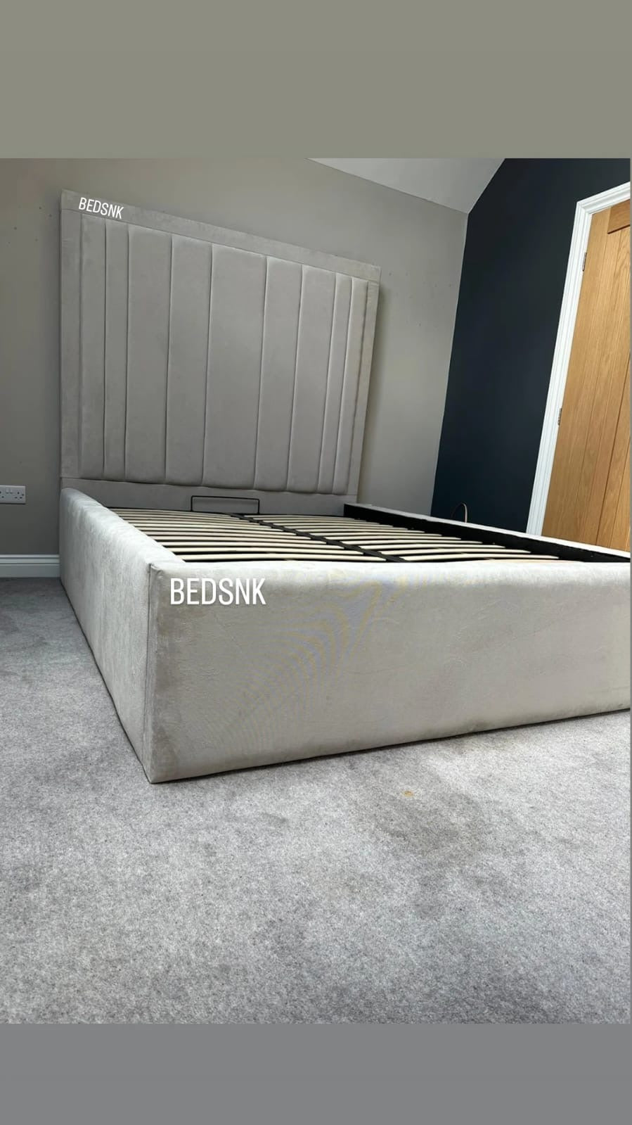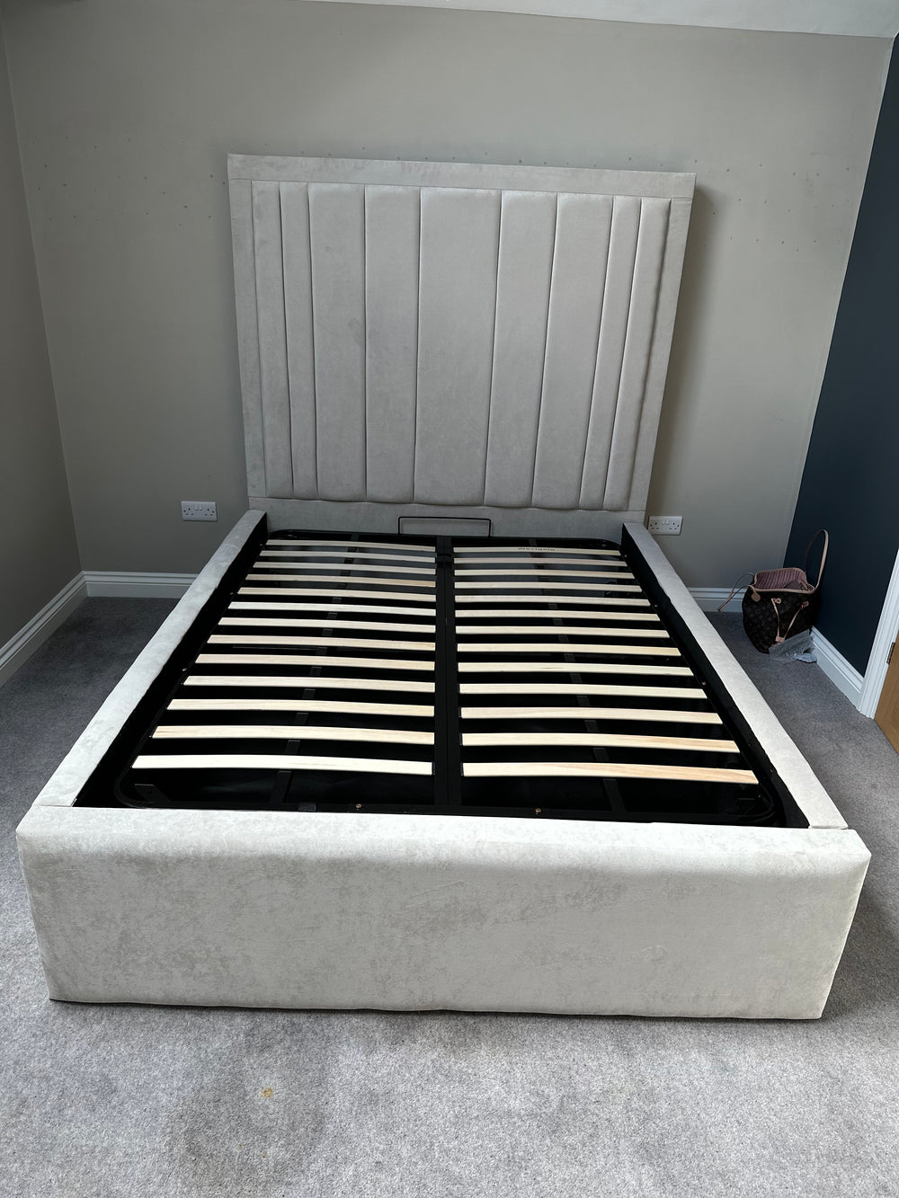 The slatted Ottoman Storage option is also gas lift up storage under the bed. However the storage is not in 2 compartments. It comes with 2 lids to store your items and belongings on. The lids are optional and can be removed so items can be stored on the floor/carpet. The mattress sits on a frame made of metal and sprung slats.