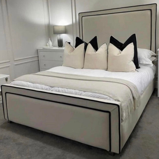 Discover the refined style of the Nina Piping Bed Frame, featuring an impressive headboard with a striking contrast and creative piping detail. With its timeless design and classic styling, it brings sophistication to any bedroom. Endlessly versatile, you will find countless ways to personalize it to complement your own unique sense of style.