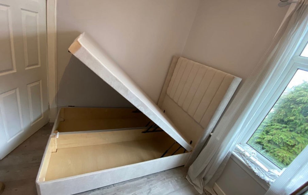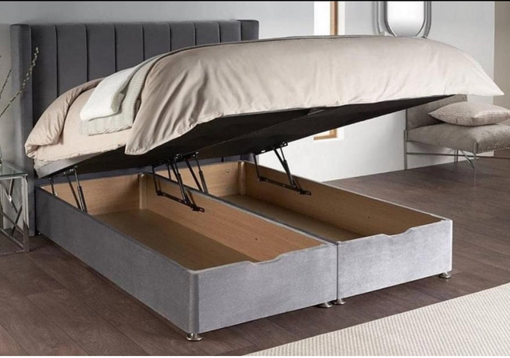 The divan ottoman storage option is gas lift up storage under the bed. Thewooden storage base is split which comes in two compartments.