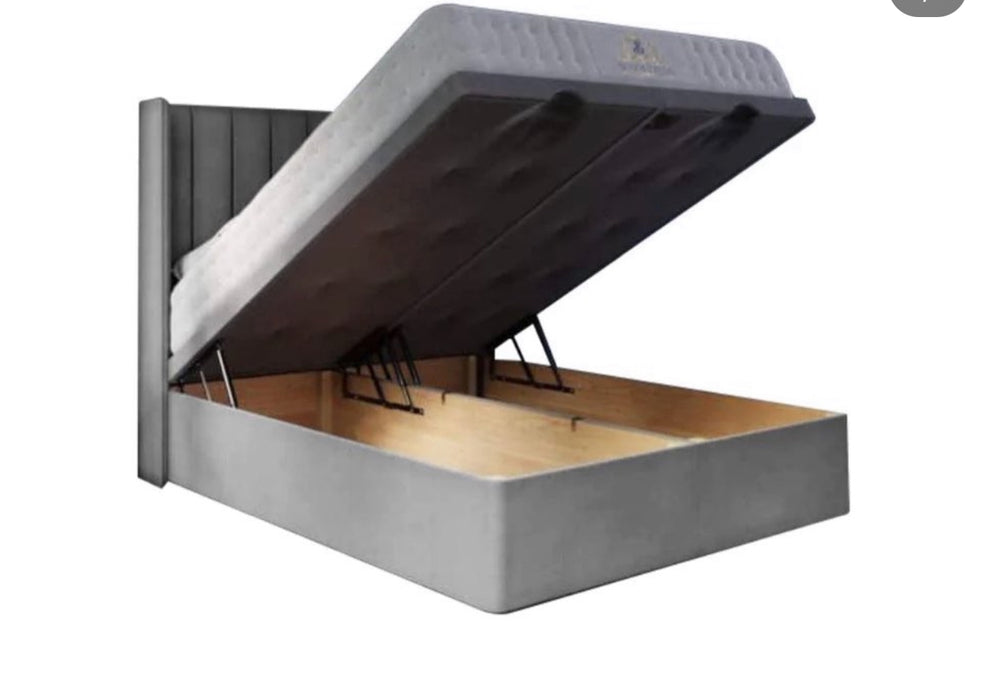 The slatted Ottoman Storage option is also gas lift up storage under the bed. However the storage is not in 2 compartments. It comes with 2 lids to store your items and belongings on. The lids are optional and can be removed so items can be stored on the floor/carpet. The mattress sits on a frame made of metal and sprung slats.