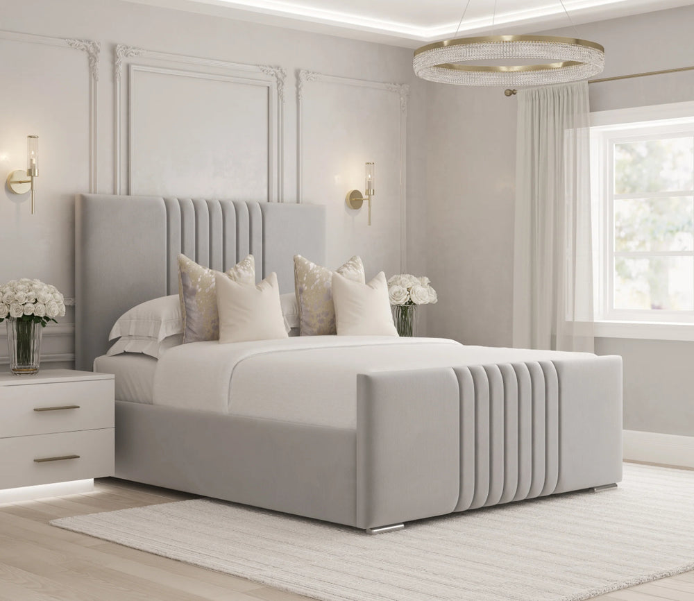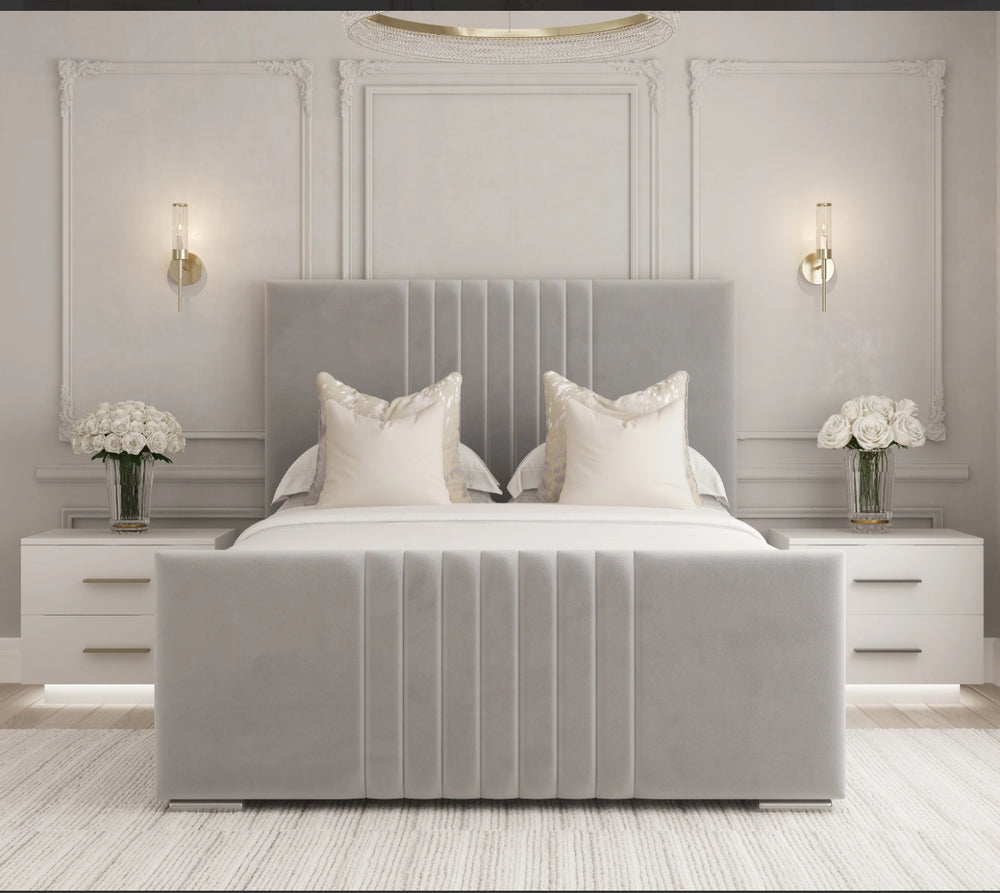 Elevate your bedroom with the bold and sophisticated design of the Cairo Bed Frame. Featuring a luxuriously thick panelled headboard and a matching footboard, this bed frame adds both style and comfort to any space. Designed to make a statement, the headboard is available in heights of up to an impressive 90 inches, creating a dramatic focal point that exudes modern elegance. Perfect for those seeking a blend of functionality and upscale design, the Cairo Bed Frame transforms your bedroom into a refined retreat.